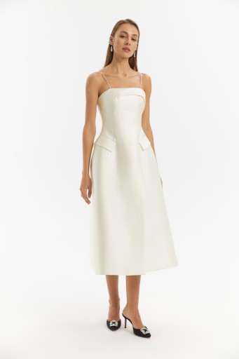 L’espoir's signature tailoring reimagines the iconic New Look silhouette in the Madeleine dress. Simultaneously elegant and contemporary. it accentuates your curves without restricting. Consider styling it with flats or heels to instantly transform your look for any occasion. The Madeleine is also available in Black. The dress runs small, the model is wearing a size XS.