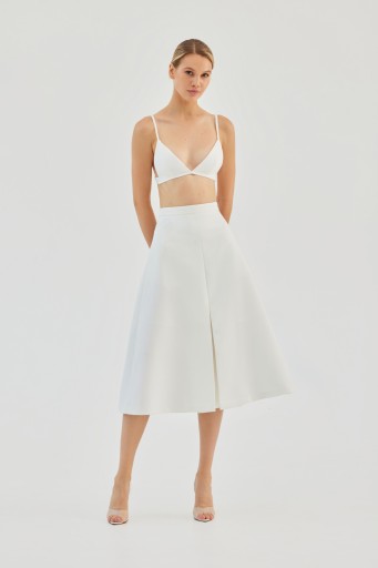 The Mya skirt is our contemporary take on the classic A-line silhouette, featuring a front pleat and added flare for a bold, statement-making entrance. This is a timeless style, perfect for an elegant day look and just dramatic enough to transition for a night. The Mya skirt runs true to size, the model is wearing a size S.